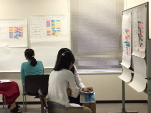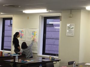 仕事に対する価値観の洗い出しから始まり、今の仕事を自己分析し「見える化」することで、次に「何がしたいか」「何が出来る」を明確化し、行動計画を作成して頂きました。皆さん、和やかな雰囲気の中、真剣に今のお仕事に向き合っていただきました。また、普段顔を合わさない同僚たちとの関係性の構築にもつながったのではないでしょうか。